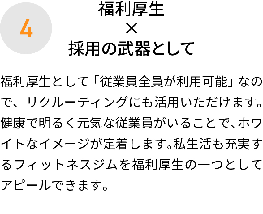 CORPORATE MEMBERSHIP 法人契約について 地元企業様との共存共栄 人を繋ぐという地域貢献 法人契約とは、UGOQ各店[栗原店|佐沼店|+PLUS|石巻店]を従業員様が福利厚生施設としてご利用いただけるシステムです。 料金案内 定額制で月に何回でも何時間でも、UGOQ各店をご利用いただけます。発行枚数分の会員証を「社内共有」していただくことで、「従業員様全員がご利用可能」となります。 法人契約による「5つの効果」 法人契約の特徴 契約日からUGOQ各店を利用可能です。従業員様は、ジムもプールもヨガもサウナも使い放題です。さらに、痩身エステや全身脱毛、コラーゲンマシンやタンニングマシンなど会員様限定の豊富なオプション(有料含む)もご選択いただけます。 ご契約までの流れ 契約書のご記入 利用者リストのご提出 支払方法のご登録 ご契約が完了したその日からご利用いただけます お電話でのお問い合わせ TEL 0228-28-1022 「法人担当(カトウ)」までお電話ください。受付時間 9:00~20:00(月曜日定休) Eメールによるお問い合わせ Info@ugoq.co.jp ご契約後のご利用方法 ①ご契約時に発行した「UGOQ会員証(ご契約枚数分)」を企業様にて管理していただきます。 ②石巻店をご利用される場合は、石巻店のスタッフまでお尋ねください。 ③ジムの各種マシンをご自由にご利用ください。マシンの使い方はお近くのスタッフに遠慮なくお聞きください。 ④パーソナルトレーニング、ハイパーナイフ、セルフ脱毛など各オプション(有料を含む)もご利用いただけます。 ⑤各店[栗原店|佐沼店|+PLUS|石巻店] を相互利用(有料を含む)できます。 お支払い方法 原則、クレジットカード払いとなります。※口座振替をご希望の場合は、法人様の口座情報が必要です。※クレジットカード及び口座振替の場合は、月会費の決済時に手数料 ¥330/月がかかります。※現金振込をご希望の場合は、毎月10日締め、当月末お支払いとなります。 お約束事項 ご契約は2年間で途中解約は原則できません。契約満了の2ヶ月前までのお申し出がない場合は自動更新となります。